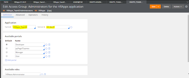 Created a new access group named HRApps_TeamA:Administrator and mapped Team A application in it.