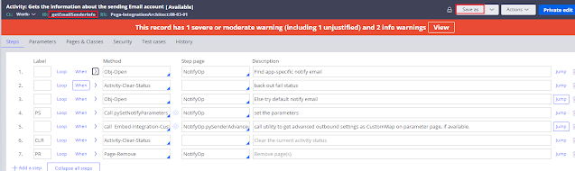 Created a sample activity(VerifyWork) to test our work, in this activity called an Pega activity named SendSimpleEmail.